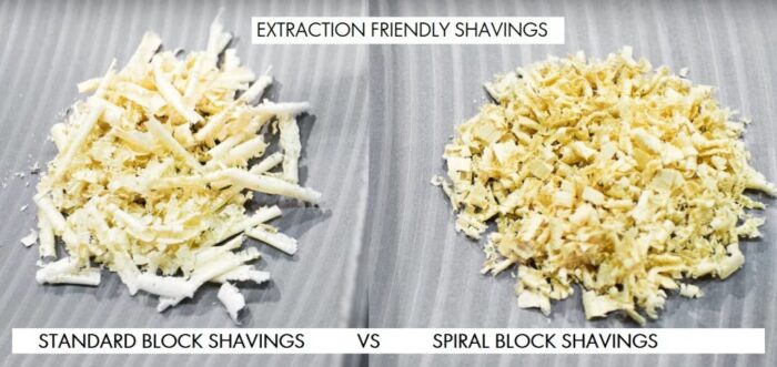 - Using Smaller Knives on a shear cut angle, the shavings produced are a lot smaller. This makes it easier for an extraction system to pull the waste away from the machine, keeping your work pieces and workplace cleaner